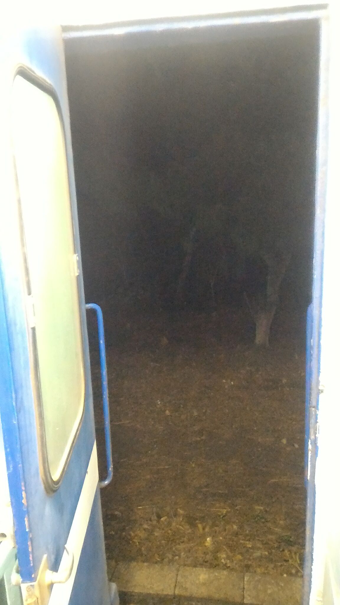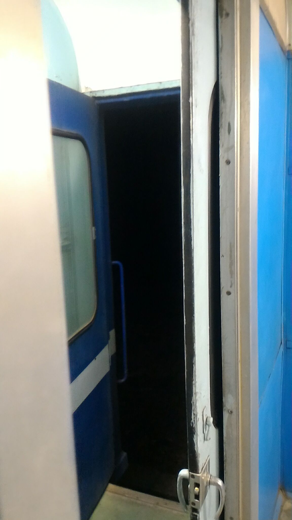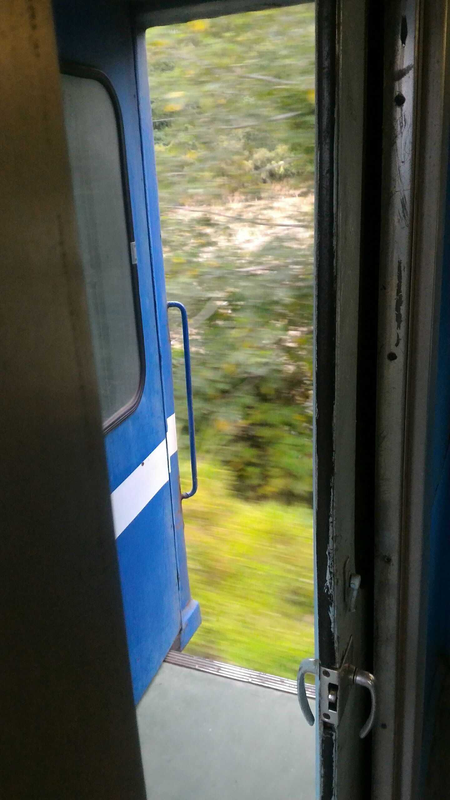 這時才發現列車門沒關...真恐怖,車子還滿搖的耶。